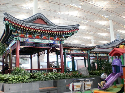 北京首都空港、こんな中国風の東屋ができてたりしてました。(左の写真は子供用の遊具付き)