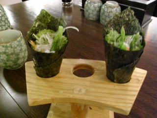 のりで巻いたただのサラダ。ごはんは入ってないです(出てくるまで手巻き寿司だと思っていたのでちょっとビックリ