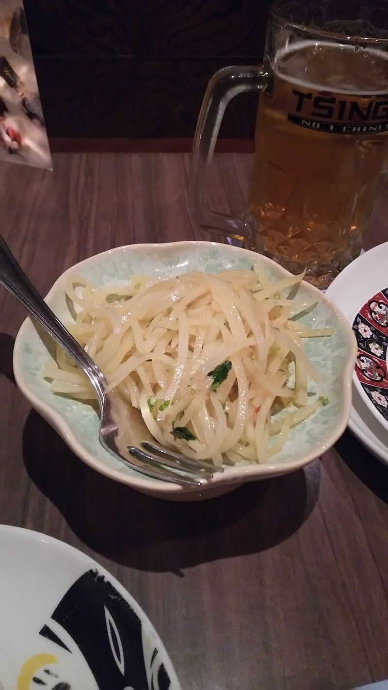 「北京のきんぴら(ジャガイモの細切り炒め)」(2段目一番左)は香菜が効いてて美味しかったですね。酸辣湯は日本で食べるのより酸っぱ辛かった!(大好き(´▽`*))タンタンメンは比較的マイルドだったかな~。