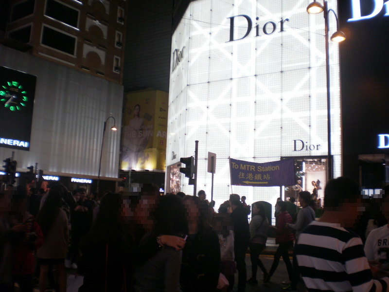 帰るときはオースティン(柯士甸)駅からMTRに乗ったのですが、ホテルの最寄り駅(尖東[チムトン]/尖沙咀[サムサーチョイ])に着いたときに思わぬアクシデントが…。なんと大晦日のカウントダウン&花火大会のためホテルに一番近い出口からの出入りがすでに禁止されてしまっていたのです!仕方がないので案内の横断幕(?)と係員さんの誘導に従って別の出口から出たのですが、土地勘がないのでどこをどう行ったらホテルにたどり着けるのか分からず…。地図や通りの標識を見ながらなんとかたどり着いたもののものすごい人・人・人!!!!!!