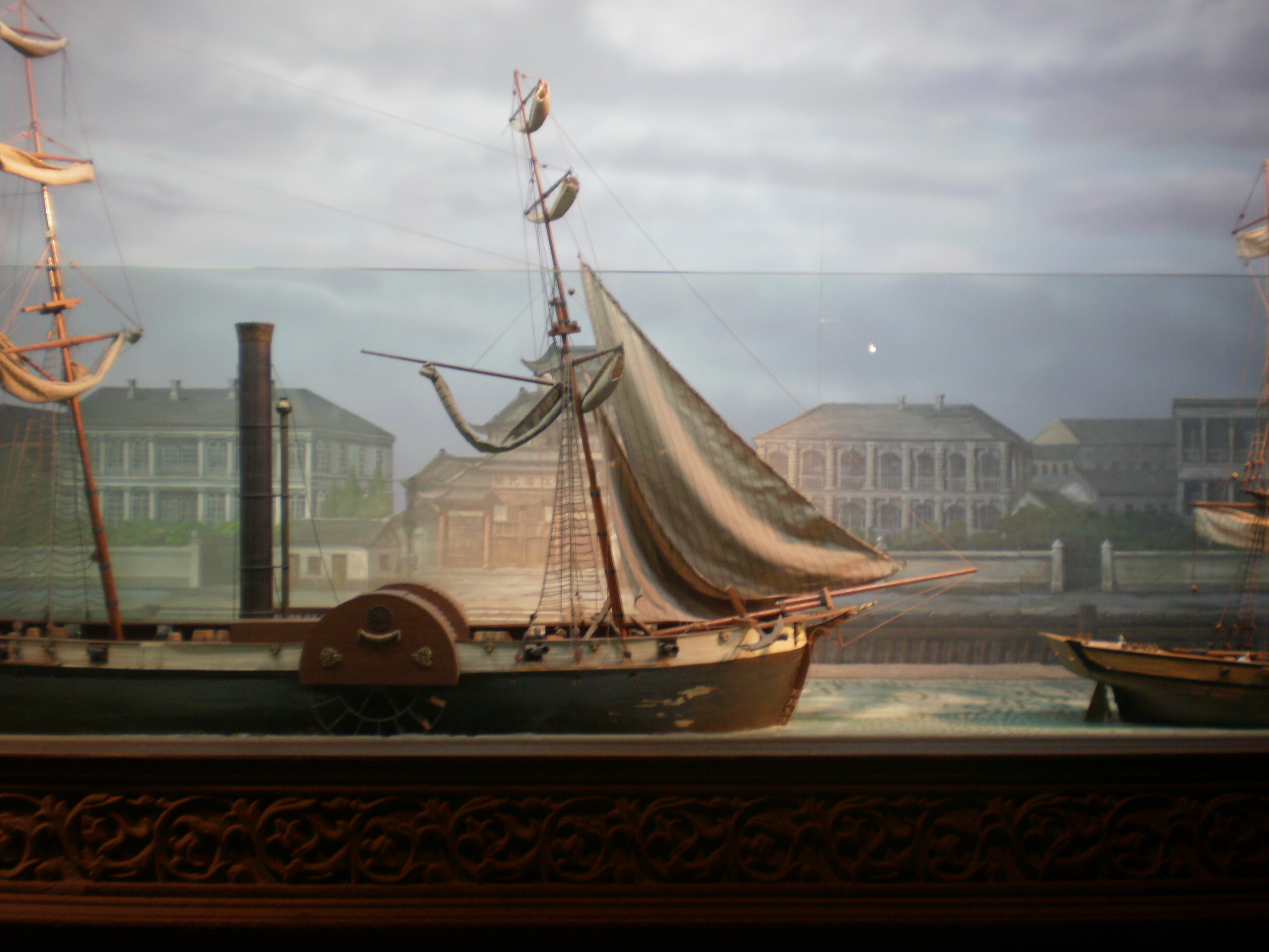 左から、古代の上海の人の暮らし、アヘン戦争の頃の船の模型、租界時代に流行った(?)「不思議な鏡」(写真じゃあまり分からないけど、鏡の表面が曲ってて背が縮んで見えます)