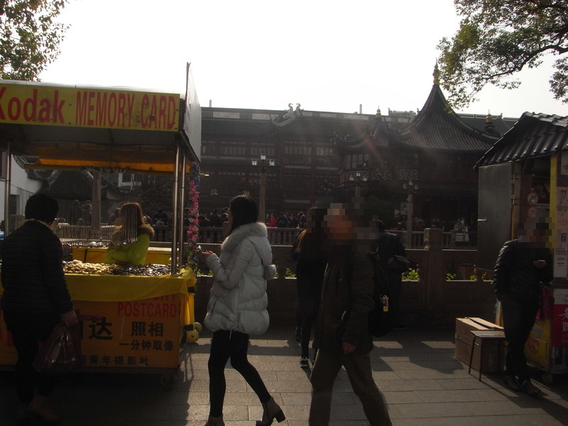 左は、入ってすぐのところにあった石。ここで結構皆記念撮影してました。真ん中は、建物の中に大きな鏡が置いてあって、鏡見ながら自撮りできる風になってたの(自撮りするために鏡が置かれたのかどうかは分かりませんが)。背後に映っているのは豫園の有名な龍壁です。