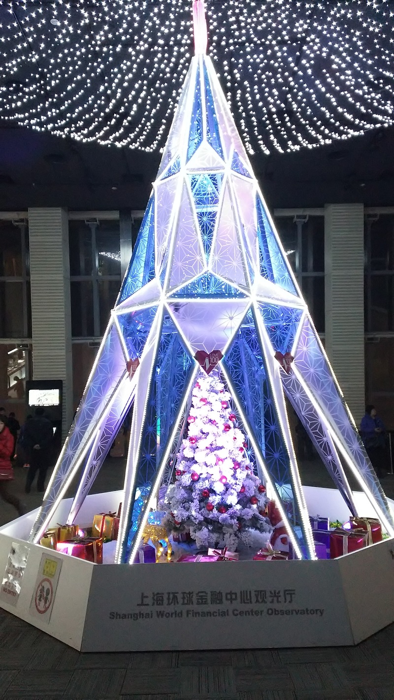 ちなみにホテルは外灘にある和平飯店(フェアモンドピースホテル)に泊まりました。ホテルの入り口にはこーんなクリスマスツリーが。
