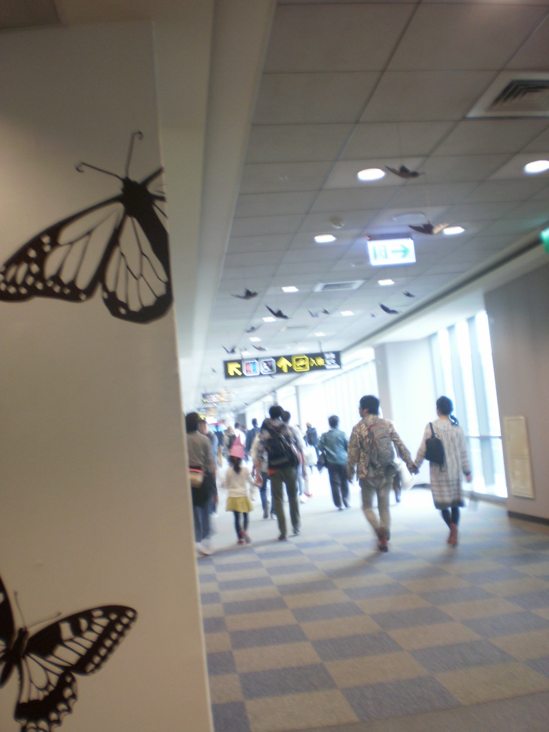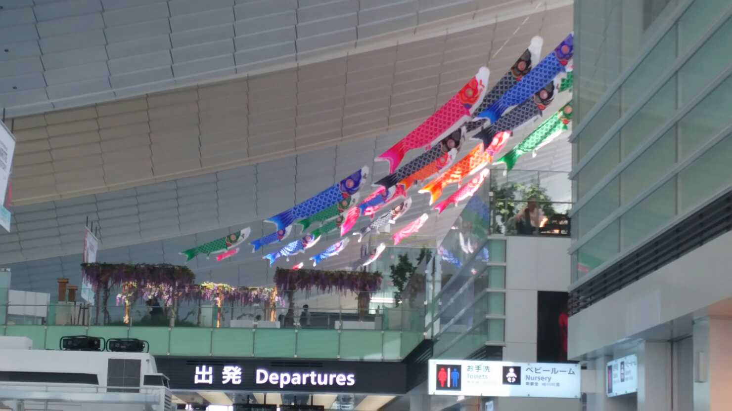 でもGWだから空港も催し物やっていて、天井には鯉のぼりが泳いでいたり、江戸時代を模したイベントが行われていたりして、なかなか楽しめました。お相撲さんや忍者、お大名、花魁、町娘に扮した劇団の人(っぽい人)が練り歩いたりしててな!