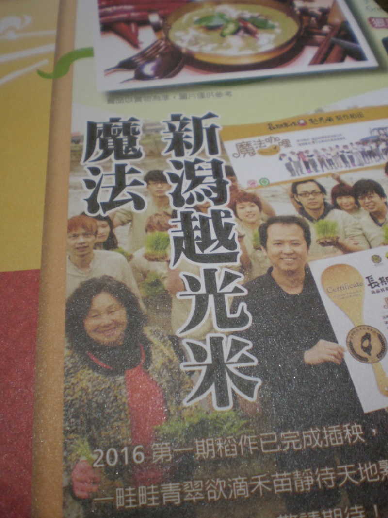 ちなみにこれ(↑)は、この後ホテルの地下街で夕食食べたレストラン(「魔法咖喱」というカレー屋さん)にあったチラシ。日本産コシヒカリを使っているそうなのですが、「コシヒカリって漢字でこう書くのか~」とちょっと衝撃的だったので(頭の中で「えっこうまい」とめっちゃ音読みして、「コシヒカリ」が出て来るまでちょっと時間かかったw)。