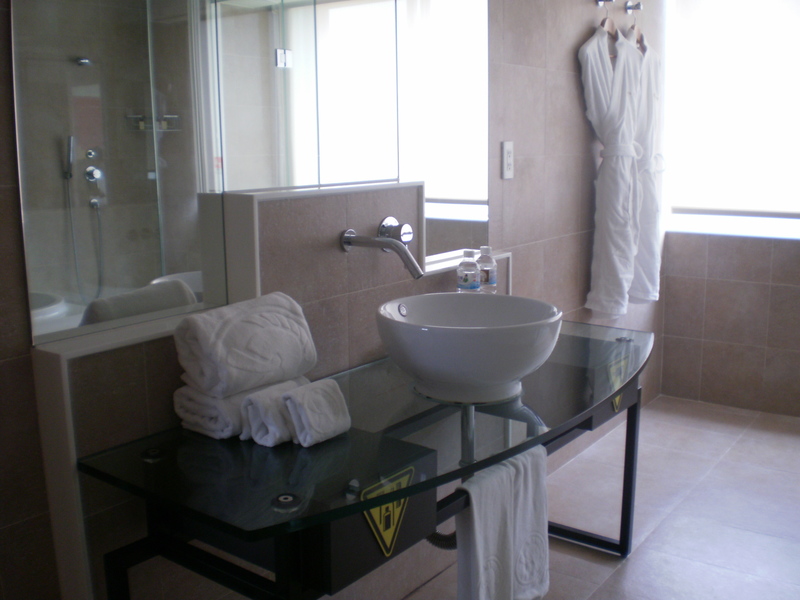 「わーなにコレ、すごーい!」と思わず3人で歓声上げちゃましたよ。特にバスルームとか…。はー…すごい(差だよ)ね。洗面所も、私達の部屋の写真は撮ってこなかったけど、まぁ普通の洗面所って感じだったし…。