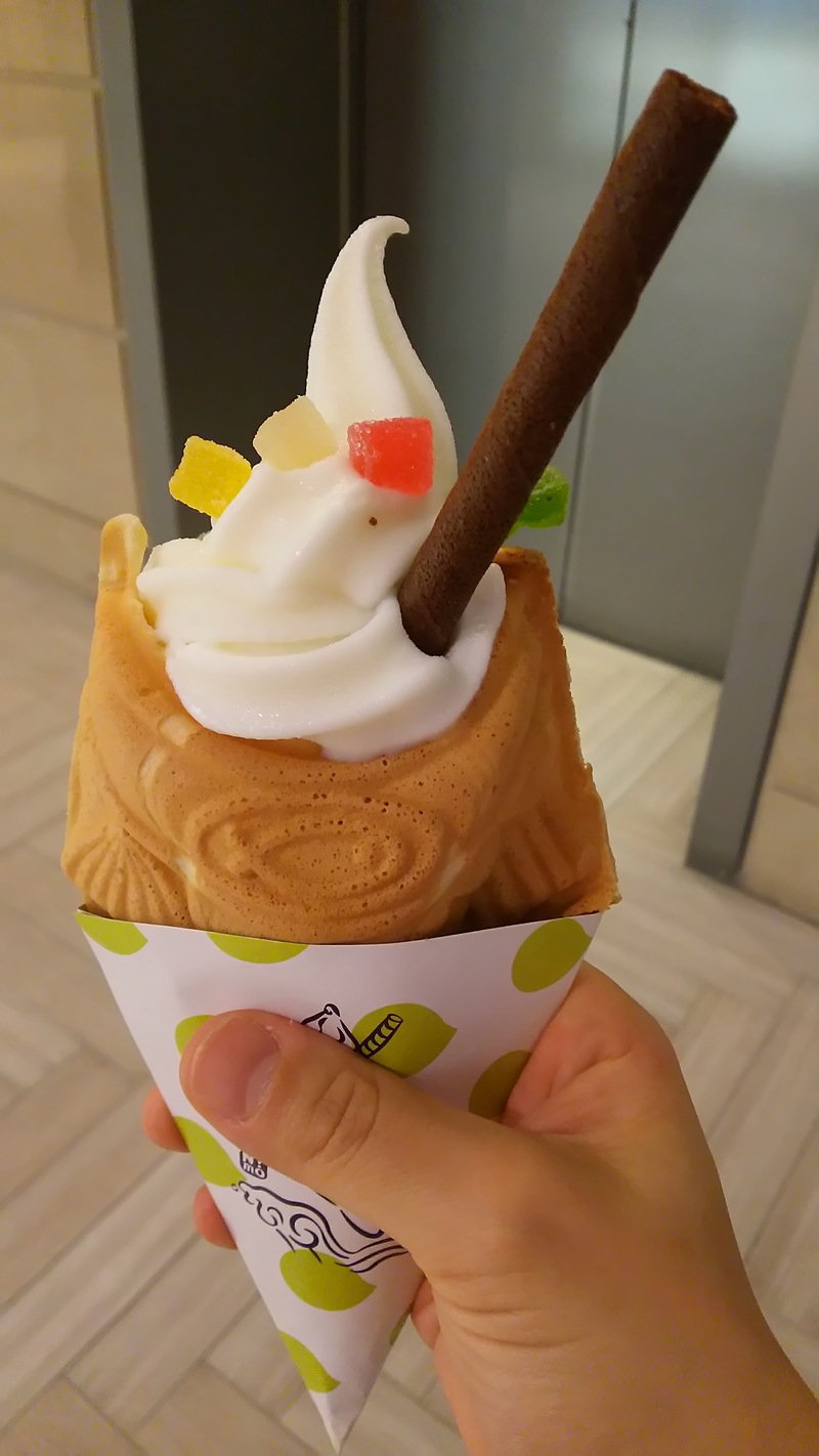 入口で台湾のたい焼き「ニモ焼き(尼模燒)」(たい焼きにアイスを突っ込んだもの)の屋台を見つけたので購入。ツイッターのTLで見かけて以来ずっと食べたいと思ってたんですよね~。