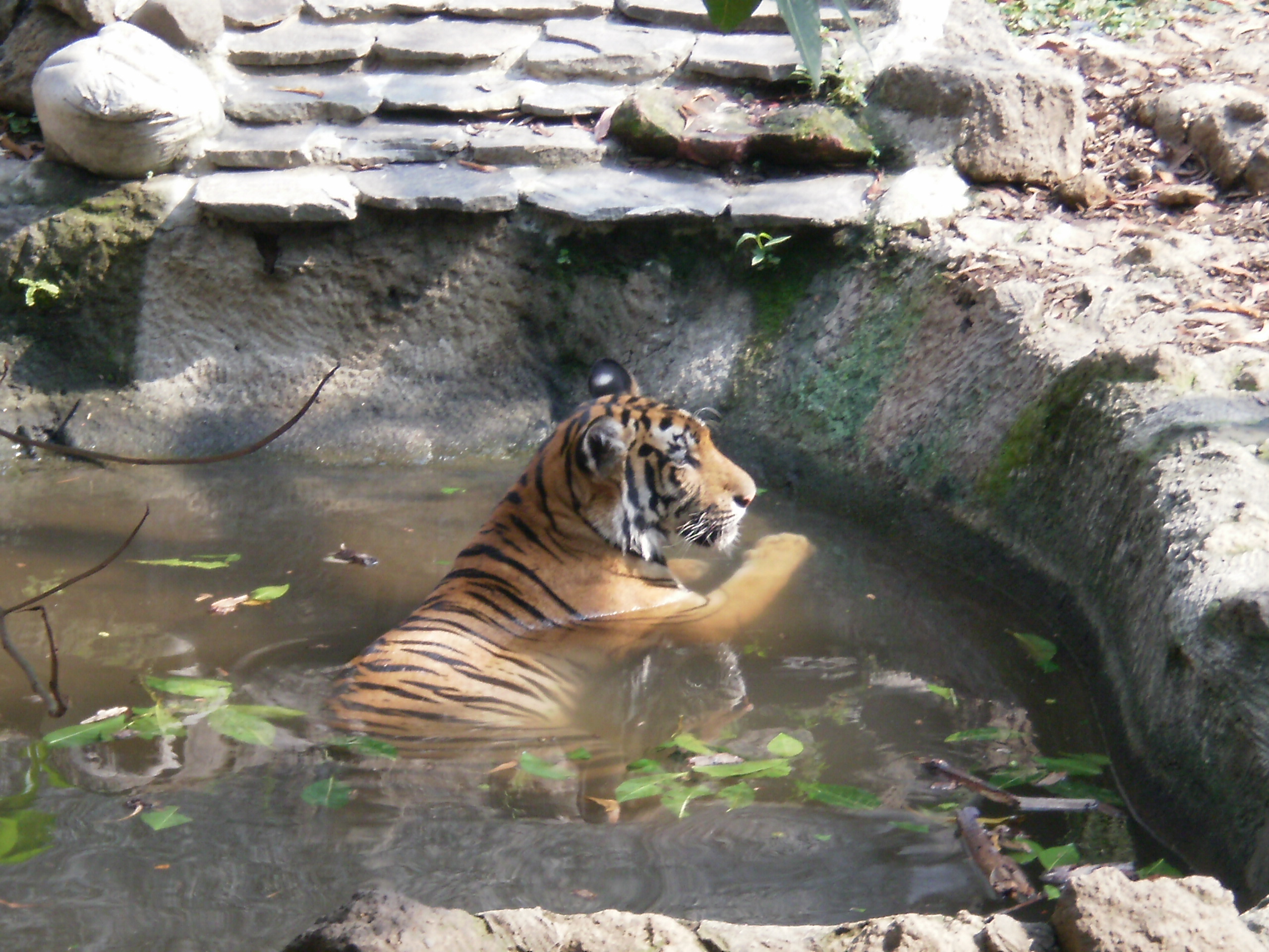 右から→暑いので水浴びするトラさん、フィリピンシカ(Philippine deer)、ヒクイドリの一種らしい鳥(Double-wattled Cassowarry)。(ガイドブックには「暑いため動物たちは日本の動物園の動物たちに比べると元気がない」って書いてあったんだけど、じっとしてくれている分シャッターチャンスに恵まれました