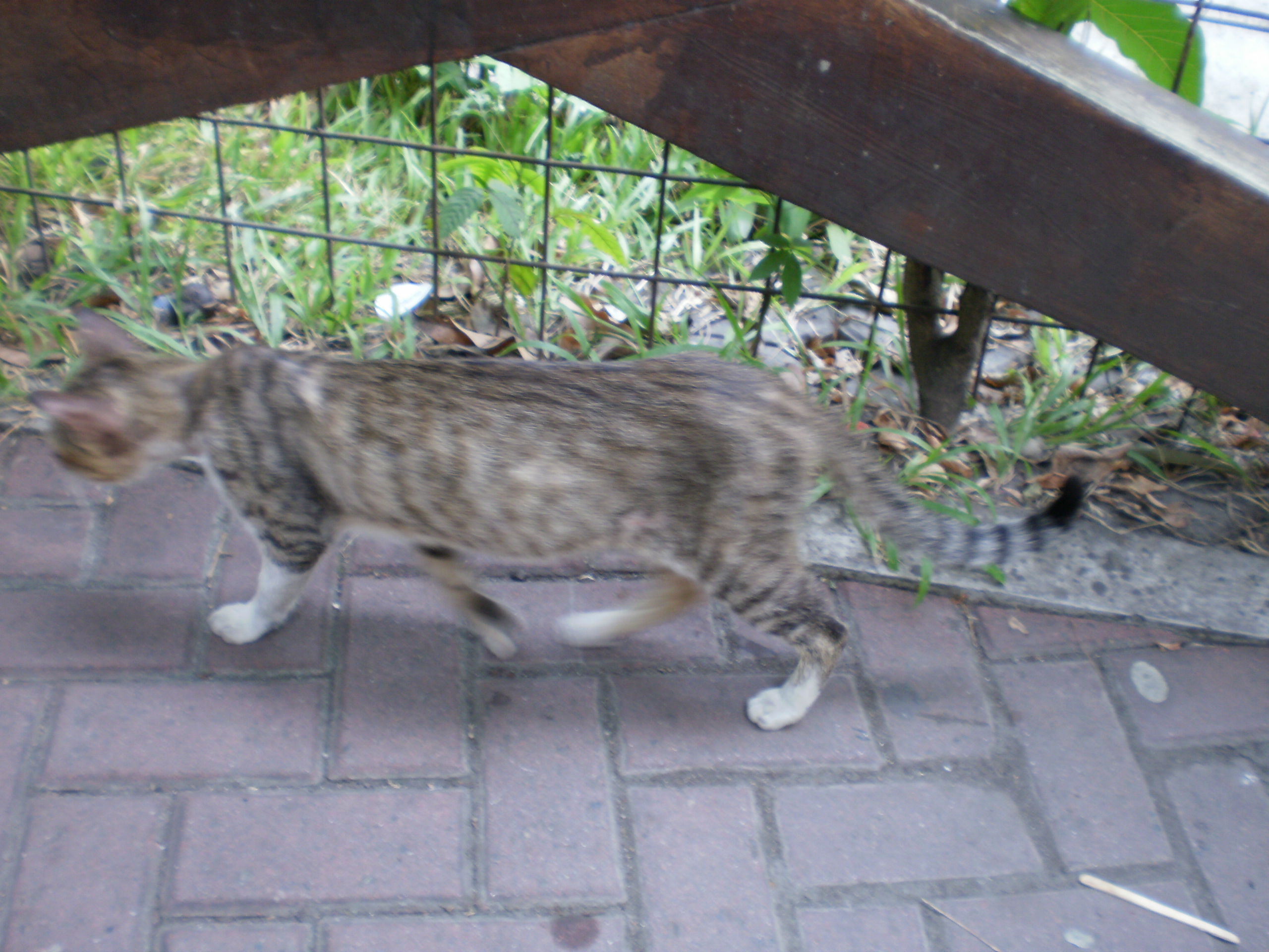 これは動物園内をうろついていたネコ。イヌとかハトとかスズメとかもそうだったんだけど、暑さのせいで毛皮が薄いのか、皮下脂肪が薄いのか何なのかよく分からないけど、日本のと比べるとやたらスレンダーでした。