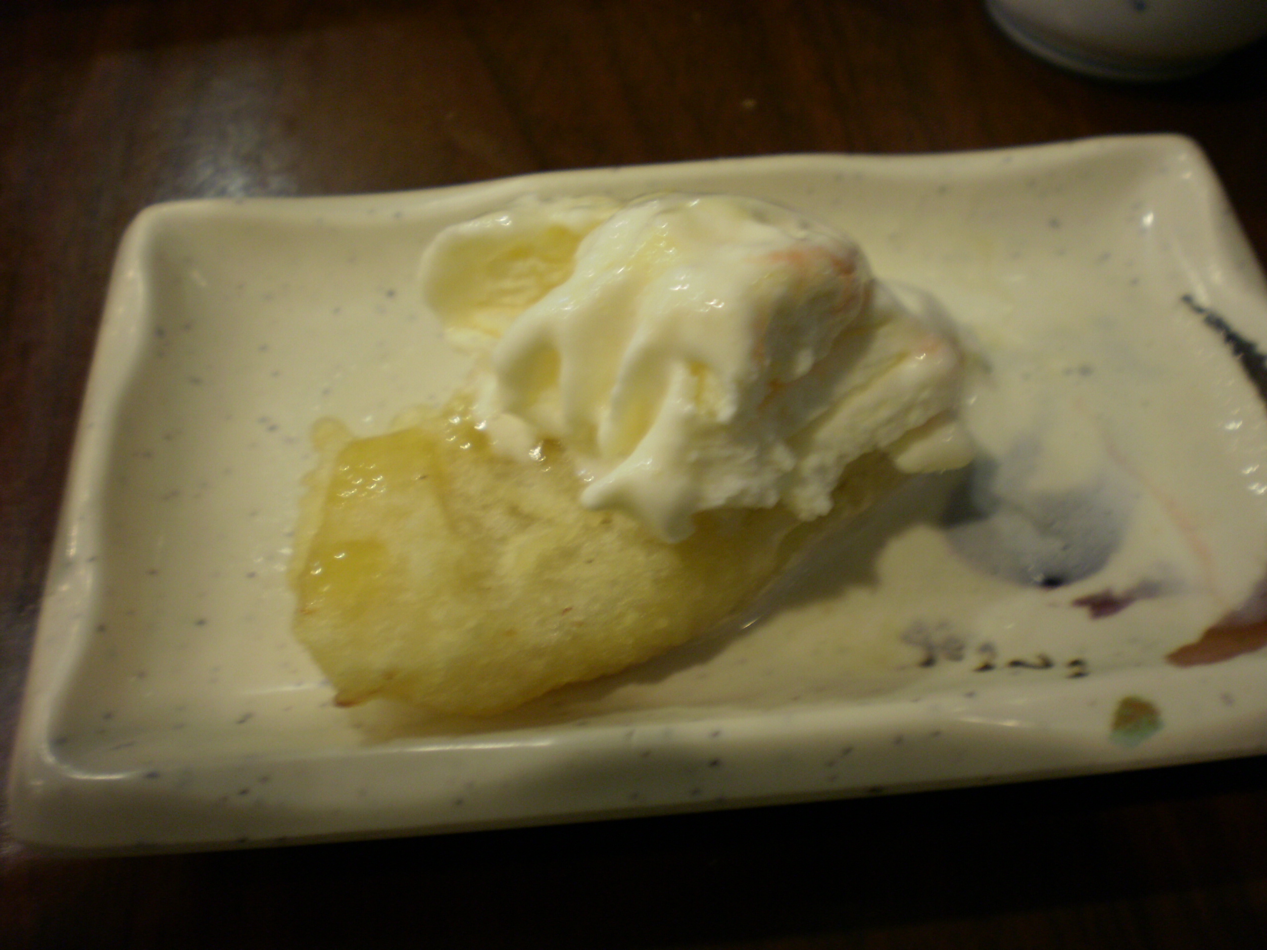 ホントはもうちょっと大きめのお皿にバナナが5切れ位のってて、その真ん中にさくらんぼ付きバニラアイスがのってたんだけど、食べるのに夢中で食べ終わる頃になって写真撮るの忘れてたこと思い出したのでなんかもう、こんな感じでゴメンナサイ