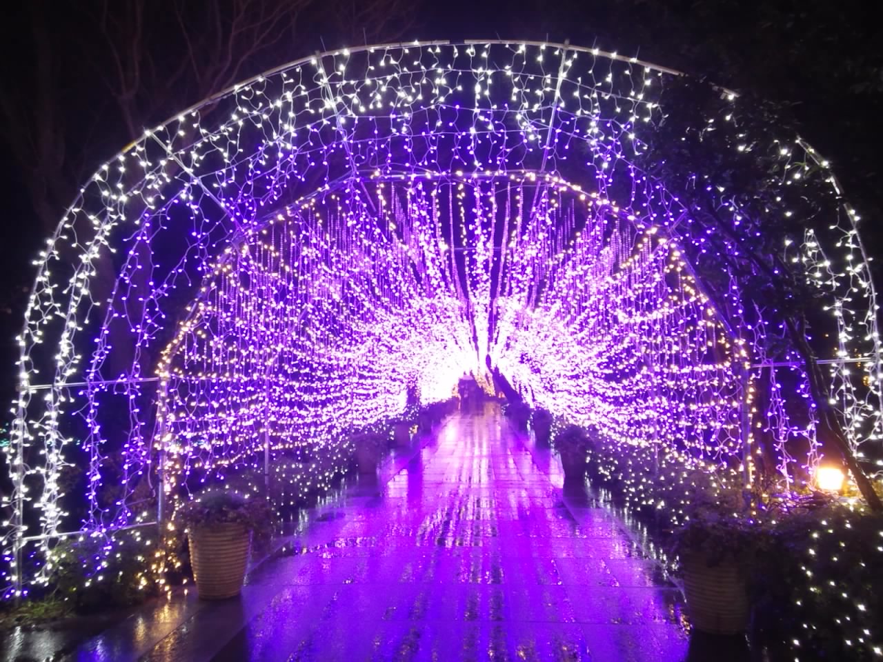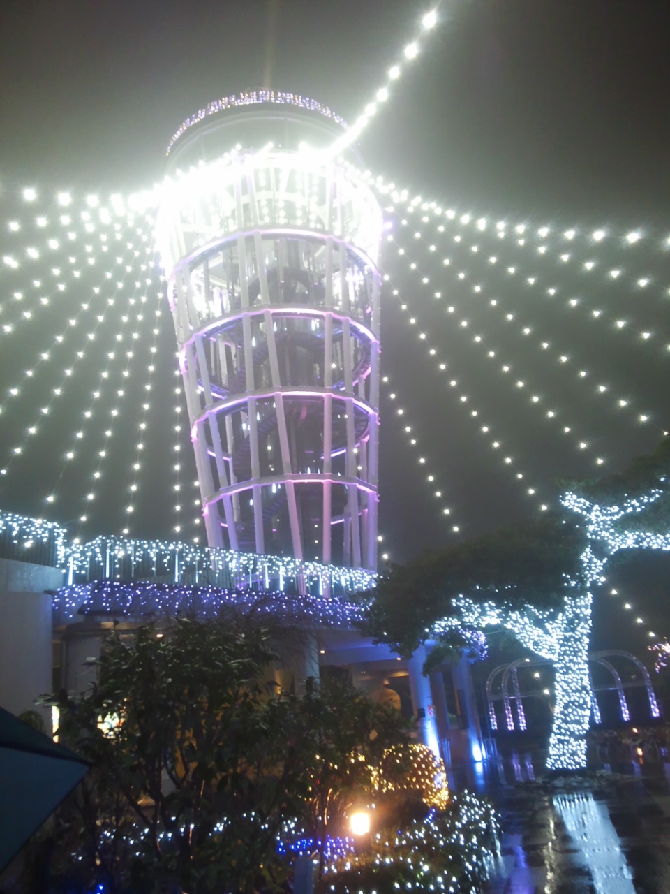 灯台のシーキャンドル(瞭望灯塔<リャオワン ドンター/liàowàng dēngtǎ>)のみならず、サムエル・コッキング苑(沙牟艾尔・廓京苑<シャムアイアー・クォジンユェン/shā mù ài ěr ・ kuò jīng yuàn>)のイルミネーションもすごくきれいでした。(「牟」は「ム/mù」ではなく、「モウ/móu」と読むかもしれないです。実際の発音を聞いたことがないので分からないですが…