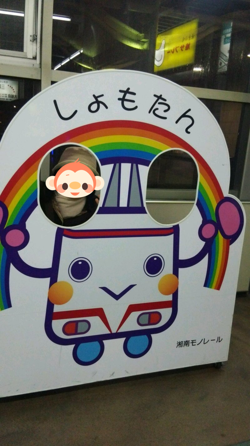帰りは夫の大好きな湘南モノレールに乗って、大船駅で記念撮影。こんな写真撮れるところあったんですね。