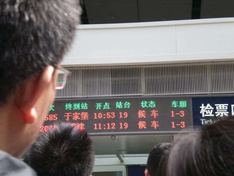 そしてついに私達が乗る列車より前に出発する予定だった天津行列車が「候车」のまま電光掲示板から消え…。私の脳裏に浮かぶ「運休」の二文字。どっどうしよう本当にそんなことになったら…。私今回はこのためだけに遠路はるばるわざわざ日本からやってきたというのに…!!!!!