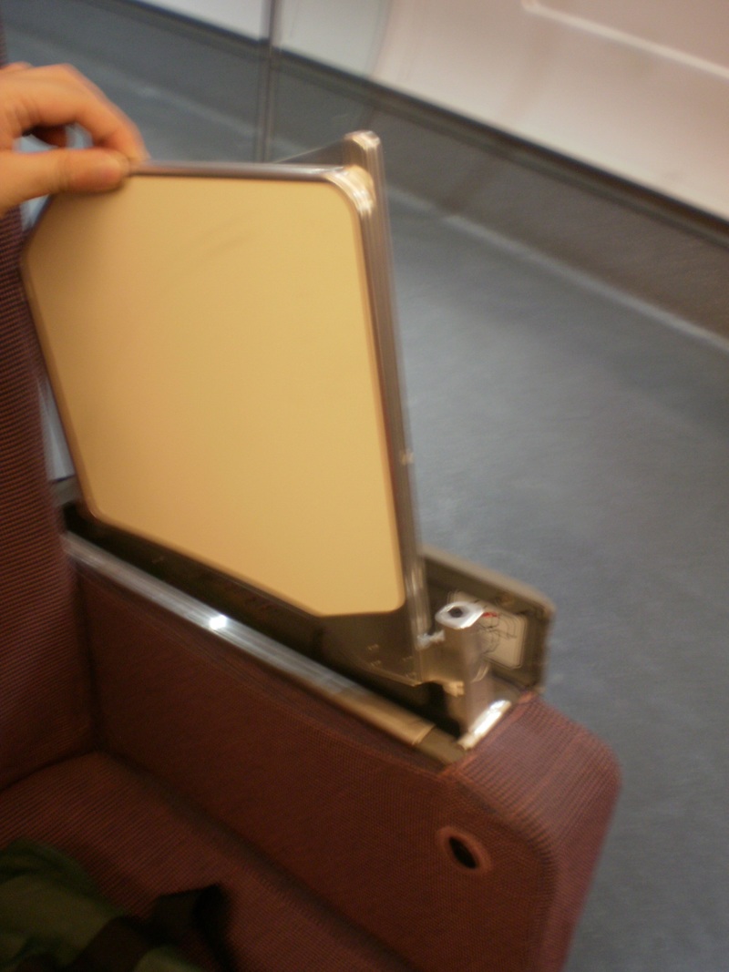 テーブルも、二等席は座席の前についてるテーブル(私たちは車両の一番前の座席だったから壁だったけど)を倒して使うタイプだったけど、一等席は座席のひじ掛けに収納されているタイプで…しかも形もシャープ!かっこいい!!!