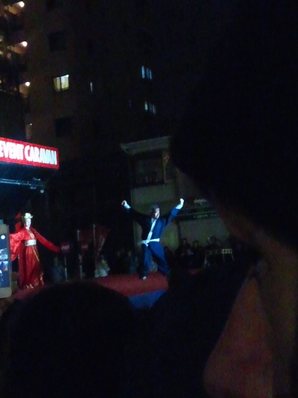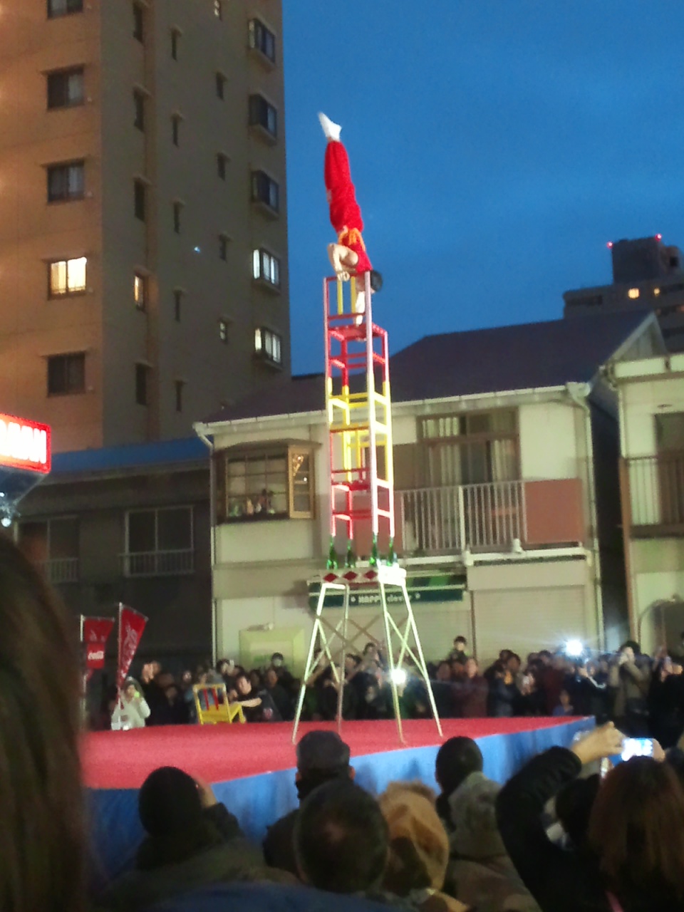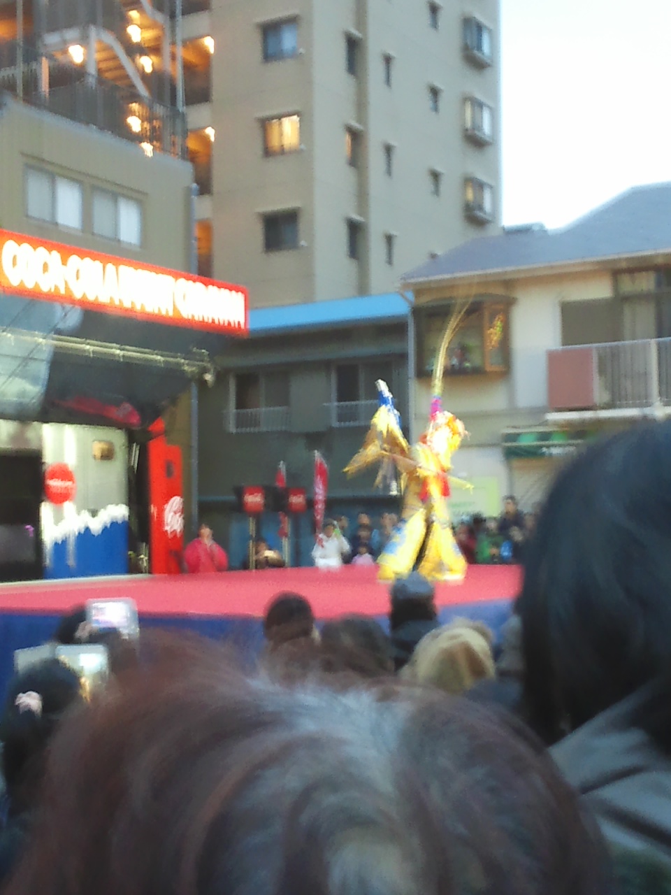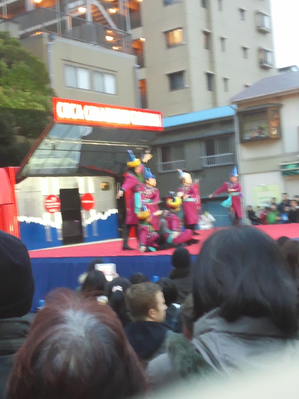 この写真じゃブレてる上に遠いから分からないけど、ホントに一瞬で顔(というか隈取り)が変わりました。ナマで見るのは初めてだったのでちょっと感動しました![]()