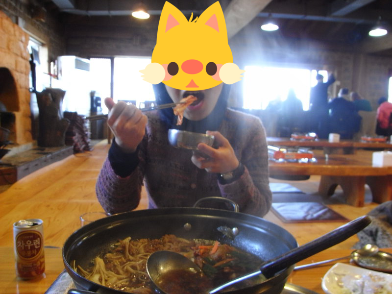 おにぎりは見た目日本の五目飯やひじきご飯のおにぎりみたいな感じだったんだけど、食べたら中に唐辛子が入っていたのか、辛かったです。さすが韓国(笑)。