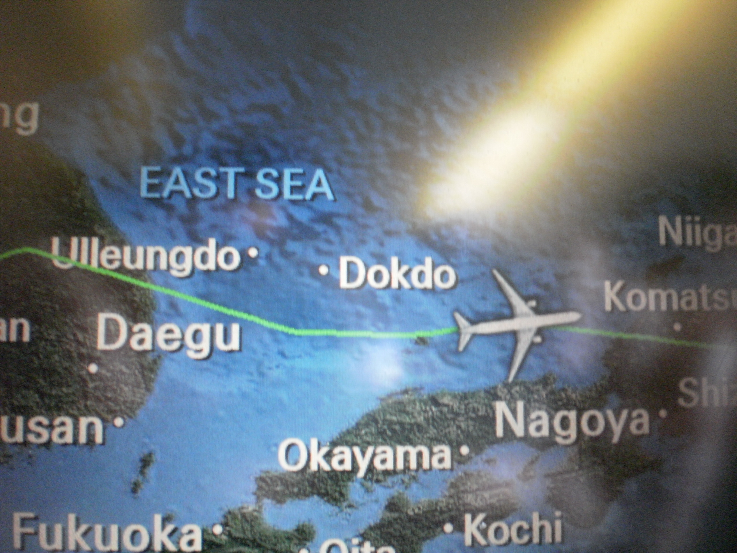 座席モニターのマップ。今回大韓航空を利用したのですが、ああ…うん、やっぱり、竹島と日本海が…そうだよね、みたいな(笑)。